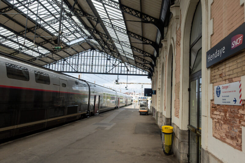 Nach dem heftigen Schauer kurz bevor ich aussteige, ist es dann doch zur Begrüßung trocken. Willkommen in Hendaye. Das wäre geschafft. Ich bin angekommen und muss grinsen.