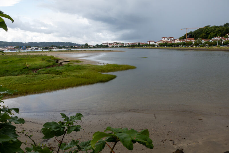 Ich vertreibe mir die lange Zugfahrt mit Schreiben, Musik hören und beobachte immer wieder die Regentropfen an der Scheibe. Es zieht sich ein bisschen. Aber ich fahre nun innerhalb eines Tages mit dem Zug bis an die spanische Grenze, bis an die Atlantikküste. Schon cool, wie schnell das geht. Und es ist eine sehr entspannte Anreise. Für die erste Nacht habe ich mir ein Hotelzimmer direkt in Hendaye gebucht, damit ich erstmal ankommen kann und mich um nichts kümmern brauche. Auch wenn es sehr teuer ist in diesem Touri-Ort mit breitem Sandstrand direkt vor der Tür. Es gab nur ein Zimmer unter 150 €. In Irun, im spanischen Nachbarort bekommt man sehr viel günstigere Zimmer. Ich wollte mir zum Beginn den Luxus gönnen, morgen nicht erst noch 2 Stunden zu meinem Startpunkt laufen zu müssen. So kann ich direkt 10 Minuten vom Hotel entfernt loswandern.