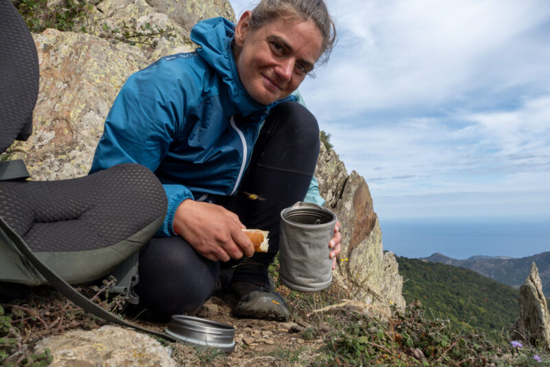 Trotz Wind hole ich meinen Gaskocher raus und koche die letzte Nudelsuppe. Dazu gibt es einen Rest Baguette. Ich bin gespannt auf das Ankommen später. Ich gehe einfach, so wie an jedem anderen Tag auch.