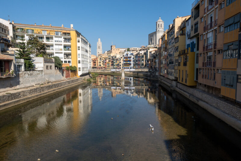 Ich setze mich in der Altstadt in einer ruhigen Gasse in eine Tapas-Bar. Hier sitze ich zwischen Spaniern. Oder wahrscheinlich eher Katalanen. Und nicht zwischen den ganzen Touristen. Hier bekommt man immer wieder mit, dass Katalonien nicht zu Spanien gehört, wenn es nach den Leuten geht. An vielen Häusern weht die gelb-rote katalanische Flagge. Und die Speisekarte in der Bar gibt es auch nur auf Katalanisch, Französisch und Englisch. Nicht auf Spanisch.